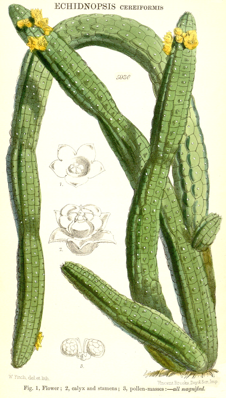 Illustrations. • Le Maout and Decaisne: Asclepias. • Le Maout and Decaisne: Cynanchum, Periploca (Periplocaceae), Stapelia, Vincetoxicum. • Adelostemma gracillimum: Hook. Ic. Pl. 15 (1883). • Anisopus mannii: Hook. Ic. Pl. 25 (1896). • Apteranthes europaea (as A. gussoniana): Bot. Mag. 84 (1858). • Araujia angustifolia: Bot. Mag 90 (1864). • Araujia sericifera: as Physianthus albens, Bot. Reg. 1759, 1836. • Araujia sericifera: as Physianthus albens: Martius, Nova Gen. et Spec. Pl. Brasiliensium (1824). • Asclepias vestita: Bot. Mag. 70 (1844). • Brachystelma barberiae: Bot. Mag. 92 (1866). • Brachystelma foetidum: Bot. Mag. 145 (1919). • Brachystelma johnstonii: Hook. Ic. Pl. 28 (1903). • Calotropis gigantea: Bot. Mag. 112 (1886). • Calotropis procera: Bot. Reg. 1792, 1836. • Calotropis procera: Bot. Mag. 112 (1886). • Caralluma europaea (as Boucerosia maroccana): Bot. Mag. 100 (1874). • Caralluma europaea (as Stapelia gussoneana): Bot. Reg. 1731 (1835). • Caralluma umbellata, as Boucerosia: R. Wight, Ic. Pl. Indiae Orientalis 2 (1843). • Ceropegia barklyi (as C. barkleyi): Bot. Mag. 103 (1877). • Ceropegia bowkeri: Bot. Mag. 89 (1863). • Ceropegia bowkeri, subsp. sororia: Bot. Mag. 92 (1866). • Ceropegia cumingiana: Bot. Mag. 74 (1848). • Ceropegia elegans: Bot. Mag. 57 (1830). • Ceropegia elegans: Bot. Reg. 1706, 1835. • Ceropegia fusca: Bot. Mag. 132 (1906). • Ceropegia gardneri: Bot. Mag. 88 (1862). • Ceropegia oculata: Bot. Mag. 70 (1844). • Ceropegia sandersonii: Bot. Mag. 95 (1869). • Ceropegia sandersonii (as C. monteiroae): Bot. Mag. 113 (1887). • Ceropegia stapelliiformis: Bot. Mag. 64 (1837). • Ceropegia thwaitsii: Bot. Mag. 80 (1854). • Ceropegia vincifolia: Bot. Mag. 66 (1839). • Ceropegia woodii: Bot. Mag. 126 (1900). • Cynanchum viminale, as Sarcostemma brachystigma: Hook. Ic. Pl. 9 (1852). • Cynanchum insigne, as Platykeleba: Hook. Ic. Pl. 25 (1896). • Dalzielia oblanceolata: Hook. Ic. Pl 31 (1916). • Dictyanthus pavonii: Bot. Mag. 79 (1853). • Dischidia hirsuta: Bot. Mag. 128 (1902). • Dittoceras andersonii: Hook. Ic. Pl. 15 (1883). • Duvalia corderoyi (as Stapelia): Bot. Mag. 100 (1874). • Duvalia polita: Bot. Mag. 102 (1876). • Echidnopsis bentii: Bot. Mag. 127 (1901). • Echidnopsis cereiformis: Bot. Mag. 97 (1871. • Edithcolea grandis: Hook. Ic. Pl. 30 (1913). • Fischeria stellata (as Gonolobus martianus): Bot. Mag. 75 (1849). • Fockea edulis (as F. cylindrica): Hook. Ic. Pl. 33 (1933). • Gomphocarpus fruticosus subsp. setosus: Bot. Mag. 123 (1897). • Hoodia currorii, as Scytanthus: Hook. Ic. Pl. 7–8 (1844). • Hoodia gordoni: Bot. Mag. 102 (1876). • Hoya australis: Bot. Mag. 96 (1870). • Hoya coriacea: Bot. Reg. 1839, 18. • Hoya imperialis: Bot. Mag. 74 (1848). • Hoya lacunosa: Bot. Mag. 81 (1855). • Hoya lasiantha (as Plocostemma lasianthum): Bot. Mag. 84 (1858). • Hoya linearis: Bot. Mag. 109 (1883). • Hoya multiflora (as Centrostemma): Bot. Mag. 86 (1860). • Hoya shepherdi: Bot. Mag. 87 (1861). • Hoya spartioides, as Astrostemma: Hook. Ic. Pl. 14 (1880). • Huernia aspera: Bot. Mag. 114 (1888). • Huernia hystrix (as Stapelia): Bot. Mag. 95 (1869). • Huernia oculata: Bot. Mag. 108 (1882). • Huernia somalica: Bot. Mag. 126 (1900). • Larryleachia cactiformis (as Stapelia): Bot. Mag. 70 (1844). • Macroscepis diademata (as M. obovata): Bot. Mag. 111 (1885). • Macroscepis grandiflora (as Physianthus auricomus): Bot. Mag. 68 (1841). • Marsdenia flavescens: Bot. Mag. 60 (1833). • Oxypetalum coeruleum (as Tweedia versicolor): Bot. Mag. 65 (1838). • Oxypetalum solanoides: Bot. Mag. 74 (1848). • Parapodium crispum: Hook. Ic. Pl. 28 (1902). • Philibertia gillesii (as P. grandiflora): Bot. Mag. 64 (1837). • Philibertia gilliesii (as P. grandiflora): Bot. Reg. 29 (13), 1843. • Raphistemma ciliatum: Bot. Mag. 98 1868). • Ruehssia macrophylla (as Marsdenia maculata): Bot. Mag. 73 (1847). • Sarcostemma viminale subsp. brunonianum: Bot. Mag. 98 (1872). • Schubertia multiflora: Lindley. • Secamone schimperianus, as Toxocarpus: Hook. Ic. Pl. 29 (1906). • Stapelia gigantea: Bot. Mag. 115 (1889). • Stapelia hirsuta var. hirsuta (as S. sororia): Bot. Mag. 98 (1872). • Stapelia nobilis: Bot. Mag. 127 (1901). • Stapelia olivacea: Bot. Mag. 102 (1876). • Stapelia plantii: Bot. Mag. 94 (1868). • Stapelia variegata: Bot. Mag. 26 (1786). • Stephanotis floribunda: Bot. Mag. 70 (1843). • Tassadia trailiana, as Madarosperma: Hook. Ic. Pl. 13 (1877–79). • Tavaresia barklyi (as Decabelone): Bot. Mag. 101 (1875). • Trichocaulon pictum: Bot. Mag. 140 (1914). • Trichocaulon piliferum: Bot. Mag. 110 (1884).