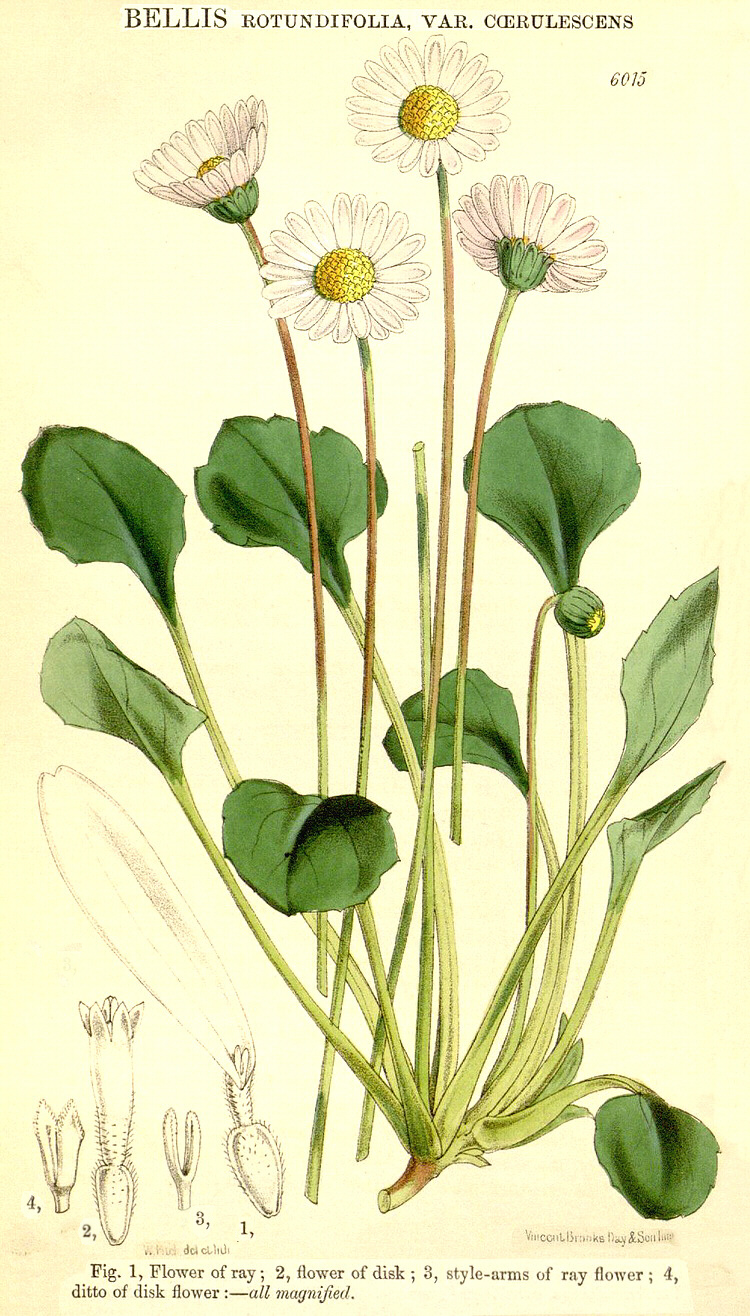 Illustrations. • Le Maout and Decaisne: Taraxacum. • Le Maout and Decaisne: Tragopogon, Cichorium, Nassauvia. • Le Maout and Decaisne: Centaurea cyanus. • Le Maout and Decaisne: Calendula, Cirsium. • Le Maout and Decaisne: Chrysanthemum, Achillea, Senecio. • Le Maout and Decaisne: Asteriscus, Helianthus, Robinsonia, Tagetes. • Le Maout and Decaisne: Eupatorium. • Achillea rupestris: Bot. Mag. 112 (1886). • cf. Agroseris glauca (as Troximon glaucum): Bot. Mag. 63 (1836). • Anisopappus chinensis subsp. africanus (as Epallage dentata): Hook. Ic. Pl. 14 (1882). • Andryala pinnatifida subsp. mogadorensis: Bot. Mag. 99 (1873). • Ainsliaea walkeri: Bot. Mag. 102 (1876). • Argyranthemum broussonetii (as Ismelia): Bot. Mag. 84 (1857). • Aster tripolium: Sowerby, Eng. Bot. 5 (1878). • Barnadesia caryophyllea (as B. rosea): Bot. Mag. 72 (1846). • Baccharoides calvoana subsp. calvoana (as Vernonia): Bot. Mag. 94 (1868). • Barnadesia caryophylla: Bot. Reg. 29 (29), 1843. • Bellis rotundifolia var. coerulescens: Bot. Mag. 99 (1873). • Berkheya radula (as B. adlami): Bot. Mag. 123 (1897). • Berkheya sphaerocephala (as Stobaea): Bot. Mag. 94 (1868). • Berlandiera pumila (as B. tomentosa: Bot. Mag. 125 (1899). • Brachyglottis laxifolia (as Senecio): Bot. Mag. 120 (1894). • Brachyglottis repanda: Hooker, Fl. Novae-Zelandiae (1853). • Brachyscome decipiens: Hooker, Fl. Tasmaniae (1860). • Brachyscome iberidifolia: as Brachycome, Bot. Reg. 09, 1841. • Brachyscome iberidifolia (as Brachycome): Bot. Mag. 67 (1841). • Calendula officinalis: Köhler’s Medizinal-Pflanzen 3 (1898). • Caputia pyramidata (as Senecio): Bot. Mag. 89 (1863). • Caputia tomentosa (as Senecio (Kleinia) haworthii): Bot. Mag. 99 (1873). • Carlina vulgaris: B. Ent. 642. • Celmisia holosericea: Hooker, Fl. Novae-Zelandiae (1853). • Centaurea benedicta (as Cnicus): Köhler's Medizinal Pflanzen 1 (1887). • Centaurea glastifolia: Bot. Mag. 2 (1788). • Centaurea pulchra: as C. pulcra, Bot. Reg. xxvi, 28 (1840). • Chrysostemma tripteris: Bot. Mag. 64 (1837). • ‘Cineraria lanata’, cf. C. tomentosolonatus: Bot. Mag. 2 (1788). • Cirsium grahamii: Bot. Mag. 97 (1871). • Comaclinium montanum (as Clomenocoma montana): Bot. Mag. 88 (1862). • Coreopsis coronata: Bot. Mag. 63 (1836). • Coreopsis grandiflora (as C. longipes): Bot. Mag. 64 (1837). • Cosmos scabiosoides: as Cosmus, Bot. Reg. XXIV, 15 (1838). • Cotula alpina and Leptinella filicula (as Cotula): Hooker, Fl. Tasmaniae (1860). • Cousinia multiloba (as C. elegans): J. Linn. Soc. Bot. 19 (1882). • Craspedia uniflora: as C. glauca, Bot. Reg. 1908 (1836). Craspedia uniflora. 1, one of the multi-floreted components of the compound capitulum, subtended by an outer, herbaceous involucral bract. 2, a single floret, subtended by a scarious, inner bract. 4, detail of the pappus, its members basally coalescent. 5, anthers. • Craspedia glauca (as C. richea): Bot. Mag. 87 (1861). • Curiotalinoides var. chordifolius (as Senecio or Kleinia chordifolia): Bot. Mag. 102 (1876). • Dahlia imperialis: Bot. Mag. 96 (1870). • Dahlia merckii: as D. glabrata, Bot. Reg. xxvi, 29 (1840). • Dimorphotheca barberae: Bot. Mag. 88 (1862). • Dimorphotheca ecklonis: Bot. Mag. 123 (1897). • Dimorphotheca graminifolia: Bot. Mag. 87 (1861). • Doronicum bourgaei: Bot. Mag. 83 (1857). • Doronicum caucasicum: Bot. Mag. 59 (1832). • Dubautia ciliolata, as Railliardia: Bot. Mag. 91 (1865). • Echinacea angustifolia: Bot. Mag. 87 (1861). • Echinops amplexicaulis: Trans. Lin. Soc. Lond. 29 (1875). • Erigeron jamaicensis: Fawcett and Rendle, Fl. of Jamaica 7 (1936). • Eupatorium glandulosum (cf. E. album): Bot. Reg. 1723, 1835. • Ewartia catipes (as Raoulia tasmanica) and Gnaphalium lawrwencii (as Pterygopappus): Hooker, Fl. Tasmaniae (1860). • Gaillardia amblyodon: Bot. Mag. 100 (1874). • Gazania pygmaea: Bot. Mag. 122 (1896). • Gerbera jamesoni: Bot. Mag. 115 (1889). • Gnaphalium gnaphalodes (as Amphidoxa): Hook. Ic. Pl. 14 (1881). • Grindelia squarrosa (as G. grandiflora): Bot. Mag. 78 (1852). • Gymnanthemum myrianthum (as Vernonia podocoma): Bot. Mag. 118 (1892). • Gynoxys fragrans: Bot. Mag. 76 (1850). • Gynura bicolor: Bot. Mag. 85 (1859). • Gynura procumbens (as G. sarmentosa): Bot. Mag. 118 (1892). • Helichrysum leucopsideum: Hooker, Fl. Tasmaniae (1860). • Helichrysum filicaule and Raoulia tenuicaulis: Hooker, Fl. Novae-Zelandiae (1853). • Hieracium pilosella: Flora Danica 19 (1787–99). • Hillardiella pinifolia (as Webbia): Bot. Mag. 89 (1863). • Hyalosperma cotula (as Helipterum): Bot. Mag. 92 (1866). • Hymenoxys californica: Bot. Mag. 67 (1840). • Inula hookeri: Bot. Mag. 105 (1879). • Inula shirensis: Hook. Ic. Pl. 14 (1882). • Iostephane heterophylla var. dicksonii: as Echinacea dicksoni, Bot. Reg. XXIV, 27 (1838). Iostephane heterophylla var. dicksonii. 1, a ray floret. 2, a disc floret, with a receptacular scale. • Kleinia anteuphorbium (as Kleinia pteroneura): Bot. Mag. 98 (1872). • Kleinia anteuphorbium (as Senecio): Bot. Mag. 100 (1874). • Kleinia fulgens: Bot. Mag. 92 (1866). • Lagenophora huegeli (as gunniana) and L. montana: Hooker, Fl. Tasmaniae (1860). • Lasianthaea helianthoides (as Tithonia ovata): Bot. Mag. 68 (1841). • Lasthenia glabrata: as L. californica, Bot. Reg. 1823, 1836. • Lasthenia gracilis (as Burrielia): Bot. Mag. 66 (1840). • Layia calliglossa: as Oxyura chrysanthemoides, Bot. Reg 1850 (1836). Layia calliglossa. 2, a ray floret with its base enwrapped by an involucral scale. 3, top of style, with the two subulate, hairy stigma branches. 4, an anther. 1, a disk floret - but stated by Lindley to belong to another plant, having been placed here in error by the artist!. • Leucogenes leontopodium (as Helichrysum) and Raoulia grandiflora: Hooker, Fl. Novae-Zelandiae (1853). • Liatris scariosa: Bot. Reg. 1654, 1835. • Liatris pi