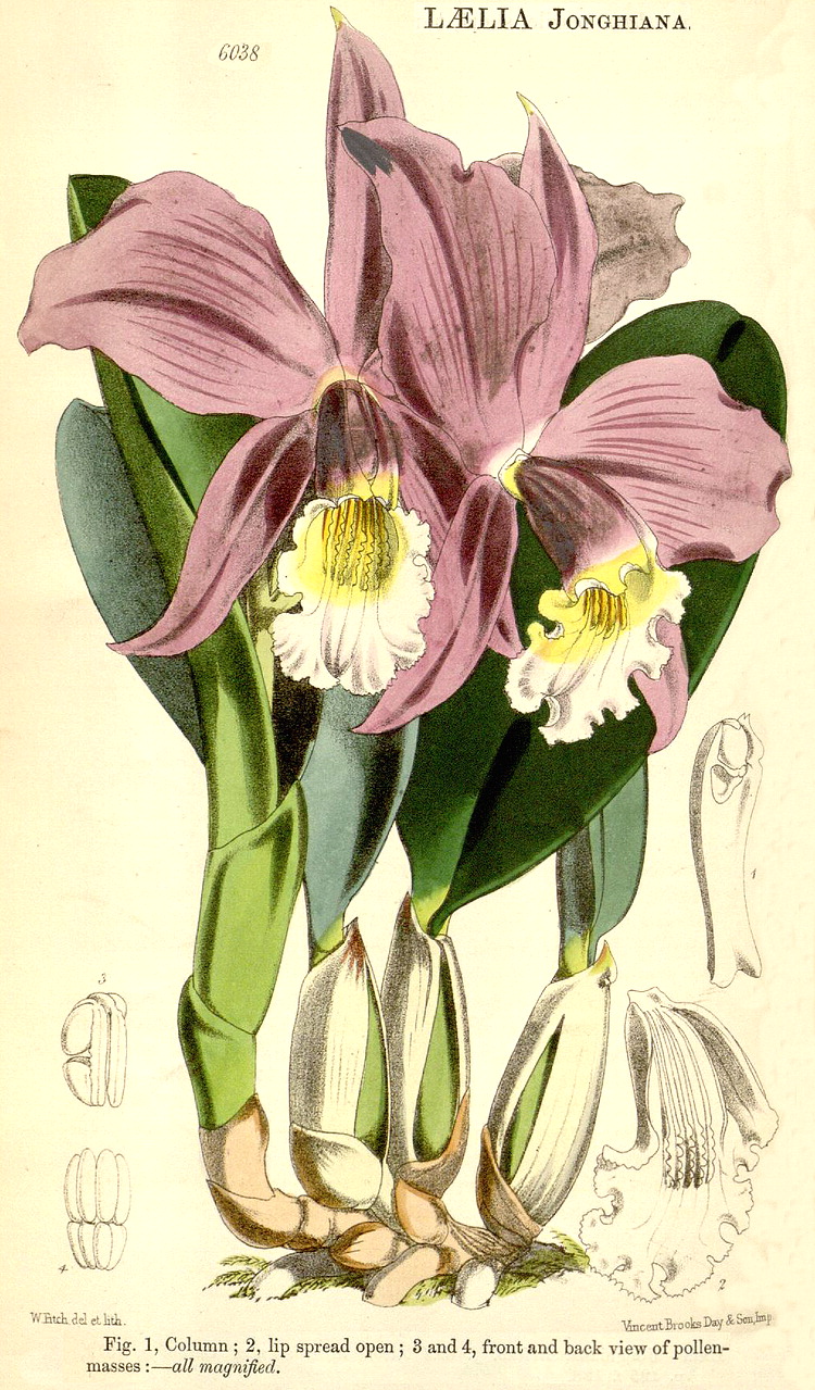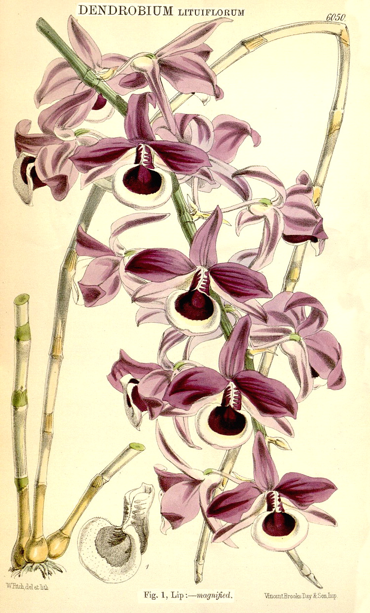 Illustrations. • Le Maout and Decaisne: Aceras, Epidendrum, Orchis. • Le Maout and Decaisne: Bulbophyllum, Lepanthes, Malaxis, Neottia, Oncidium, Phalaenopsis. • Le Maout and Decaisne: Angraecum, Epidendrum, Fernandezia, Phaius, Pleurothallis, Vanilla. • Le Maout and Decaisne: Chysis, Leptotes, Miltonia. • Dactylorhiza maculata, morphological details: Goebel. • Adenochilus gracilis and Caladenia minor: Hooker, Fl. Novae-Zelandiae (1853). • British: Orchis and Dactylorhiza (B. Ent. compilation). • British: Dactyorhiza incarnata (B. Ent.). • British: Cephalanthera damosonium (B. Ent.). • British: Corallorhiza trifida (B. Ent.). • British: Gymnadenia, Listera, Platanthera (B. Ent. compilation). • British: Listera cordata: B. Ent. 634. • British: Ophrys, Aceras, Spiranthes (B. Ent. compilation). • British: Coeloglossum, Neottia, Herminium, Epipactis, Anacamptis (B. Ent. compilation). • Australian: Caladenia spp. (photos). Caladenia flava (left) and C. reptans. Cranbrook, Western Australia, August 2005. Photos by Giles Watson. • Australian: Prasophyllum and Pterostylis (photos). Pterostylis recurva, Cranbrook, Western Australia; Prasophyllum cf. fimbria, Albany, Western Australia (note the adaxial labellum). Giles Watson, August 2005. • Australian: Diuris longifolia (photo). • Acanthephippium javanicum (as Acanthophippium): Bot. Mag. 76 (1850). • Acianthera bicarinata (as Pleurothallis): Bot. Mag. 71 (1845). • Acianthera prolifera (as Pleurothallis): Bot. Reg. 1298. • Aerangis citrata (as Angraecum): Bot. Mag. 93 (1867). • Aeranthes arachnites (as Acranthus arachnitis): Bot. Mag. 99 (1873). • Aerides cylindricum: Bot. Mag. 83 (1857). • Aerides mitrata (as A. mitratum): Bot. Mag. 94 (1868). • Aerides multiflora (as A. affine): Bot. Mag. 70 (1844). • Ania viridifusca: Bot. Mag. 78 (1852). • Ansellia africana: Bot. Mag. 83 (1857). • Angraecum distichum: Bot. Mag. 71 (1845). • Angraecum sesquipedale: Bot. Mag. 85 (1859). • Anguloa uniflora: Bot. Mag. 80 (1854). • Anguloa hohenlowii x A. clowesii (as A. ruckeri): Bot. Mag. 89 (1863). • Anoectochilus regalis: as A. setaceus, Bot. Reg. 2010, 1837. • cf. Anoectochilus setaceus: Bot. Mag. 70 (1844). • Arachnis cathcartii (as Vanda): Bot. Mag. 96 (1870). • Arethusa bulbosa: Bot. Mag. 48 (1822). • Arpophyllum spicatum: Bot. Mag. 99 (1873). • Arundina graminifolia (as A. deusa): Bot. Reg. 37, 1842. Arundina graminifolia. 1, the lip excised and spread open. 2, the column. 3, the pollinia. • Arundina graminifolia, as A. bambusifolia: Bot. Mag. 119 (1893). • Aspasia epidendroides: Bot. Mag. 68 (1842). • Aspasia variegata: Bot. Reg. 1907 (1836). Aspasia variegata. 1, details of the column (centre) and of the pollinia (left). • Aspasia variegata: Bot. Mag. 65 (1838). • Barkeria uniflora (as B. elegans): Bot. Mag. 80 (1854). • Barkeria spectabilis: Bot. Mag. 70 (1844). • Bartholina burmanniana (as B. pectinata): Bot. Reg. 1653, 1835. Bartholina burmanniana. a, whole plant; b, flower from in front; c, flower from behind; d, flower in half profile, the lip cut away (l = spur); e, front view of "petals" (1 = spur) and anther (2). • Brachystele bracteosa (as Spiranthes): Bot. Reg. 1934, 1837. Brachystele bracteosa. 1, entire flower. 2, detail with perianth removed, showing the back of the column and the lip. • Batemannia colleyi: Bot. Mag. 67 (1840). • Bletia purpurata (as Crybe rosea): Bot. Reg. 1872 (1836). • Bletia catenulata (as B. sherrattiana): Bot. Mag. 93 (1867). • Brachycorythis macrantha (as Eulophia helleborina): Bot. Mag. 966 (1870). • Brassavola acaulis (as B. lineata): Bot. Mag. 79 (1853). • Brassavola nodosa var. nodosa (as B. venosa): Bot. Mag. 69 (1843). • Brassia arcuigera (as B. lawrenciana var. longissima): Bot. Mag. 95 (1869). • Brassia aurantiaca (as Ada): Bot. Mag. 90 (1864). • Brassia maculata (as B. wrayae): Bot. Mag. 69 (1843). • Bromheadia finlaysoniana (as B. palustris): Bot. Reg. 1844, 18. Bromheadia finlaysoniana. 1, front view of the column. 2, adaxial view of the lip. 3, the gland and pollinia. • Bromheadia finlaysoniana (as B. palustris): Bot. Mag. 69 (1843). • Broughtonia sanguinea: Bot. Mag. 58 (1831). • Bulbophyllum barbigerum: as Bolbophyllum, Bot. Reg. 1942, 1837. • Bulbophyllum barbigerum (as Bolbophyllum): Bot. Mag. 87 (1861). • Bulbophyllum chinense (as Cirrhopetalum): Bot. Reg. 29 (49), 1843. • Bulbophyllum chinense (as Cirrhopetalum): Bot. Reg. 29 (49), 1843. • Bulbophyllum drymoda (as Drymoda picta): Bot. Mag. 97 (1871). • Bulbophyllum fimbriatum (as Cirrhopetalum): Bot. Mag. 74 (1848). • Bulbophyllum grandiflorum: Bot. Mag. 127 (1901). • Bulbophyllum helenae (as Cirrhopetalum cornutum): Bot. Mag. 79 (1853). • Bulbophyllum lemniscatum (as Bolbophyllum): Bot. Mag. 98 (1872). • Bulbophyllum longiflorum (as Cirrhopetalum thouarsii): Bot. Mag. 72 (1846). • Bulbophyllum longiflorum (as Cirrhopetalum thouarsii): Bot. Mag. 118 (1892). • Bulbophyllum longiflorum (as Cirrhopetalum thouarsii): Bot. Reg. XXIV, 11 (1838). • Bulbophyllum macraei (as Cirrhopetalum): Bot. Mag. 75 (1849). • Bulbophyllum malachadenia (as Malachadenia clavata): Bot. Mag. 73 (1847). • Bulbophyllum maximum (as Megaclinium): Bot. Mag. 69 (1843). • Bulbophyllum maximum (as Megaclinium purpuratum): Bot. Mag. 97 (1871). • Bulbophyllum medusae (as Cirrhopetalum): Bot. Reg. 12, 1842. Bulbophyllum medusae. 1, column, petals and labellum. 2, the labellum separated. • Bulbophyllum medusae (as Cirrhopetalum): Bot. Mag. 83 (1857). • Bulbophyllum psittacoglossum (as Sarcopodium): Bot. Mag. 89 (1863). • Bulbophyllum saltatorium: as Bolbophyllum, Bot. Reg. 1970, 1837. Bulbophyllum saltatorium. 1, a whole flower. 2, the column and “petals”. 3, the base of the lip. 4, the pollinia. • Burnettia cuneata and Caleana major: Hooker, Fl. Tasmaniae (1860). • Caladenia carnea: Bot. Mag. 124 (1898). • Calanthe limatodes 