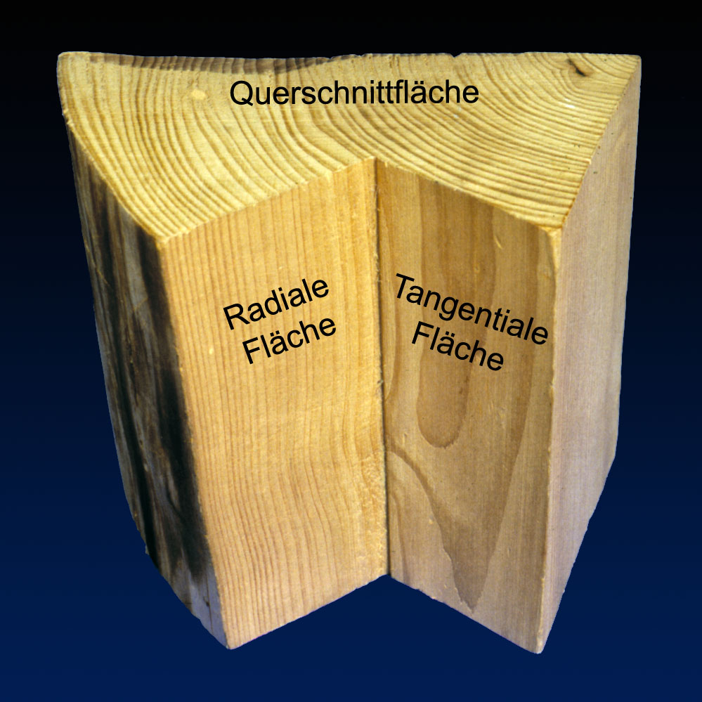 Auf diesen drei Schnittebenen bzw. Oberflächen können Strukturunterschiede beobachtet werden, die zu einer Identifikation einer Holzart beitragen können. Die drei Schnittrichtungen ergeben zusammen ein räumliches Bild vom Holzkörper.
