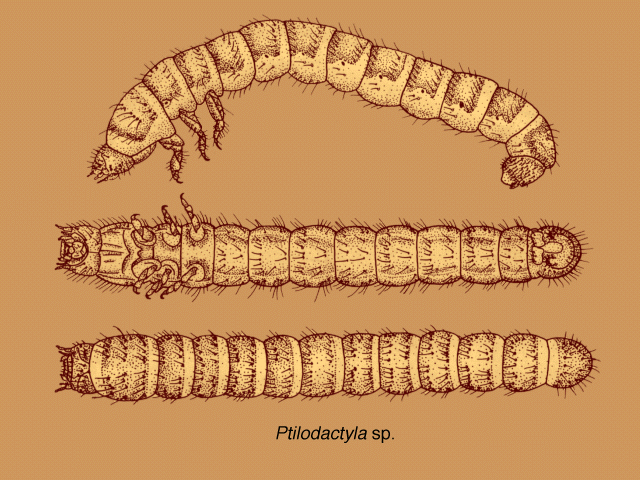Larvae of Ptilodactyla occur in leaf litter and rotten wood, and are entirely terrestrial.